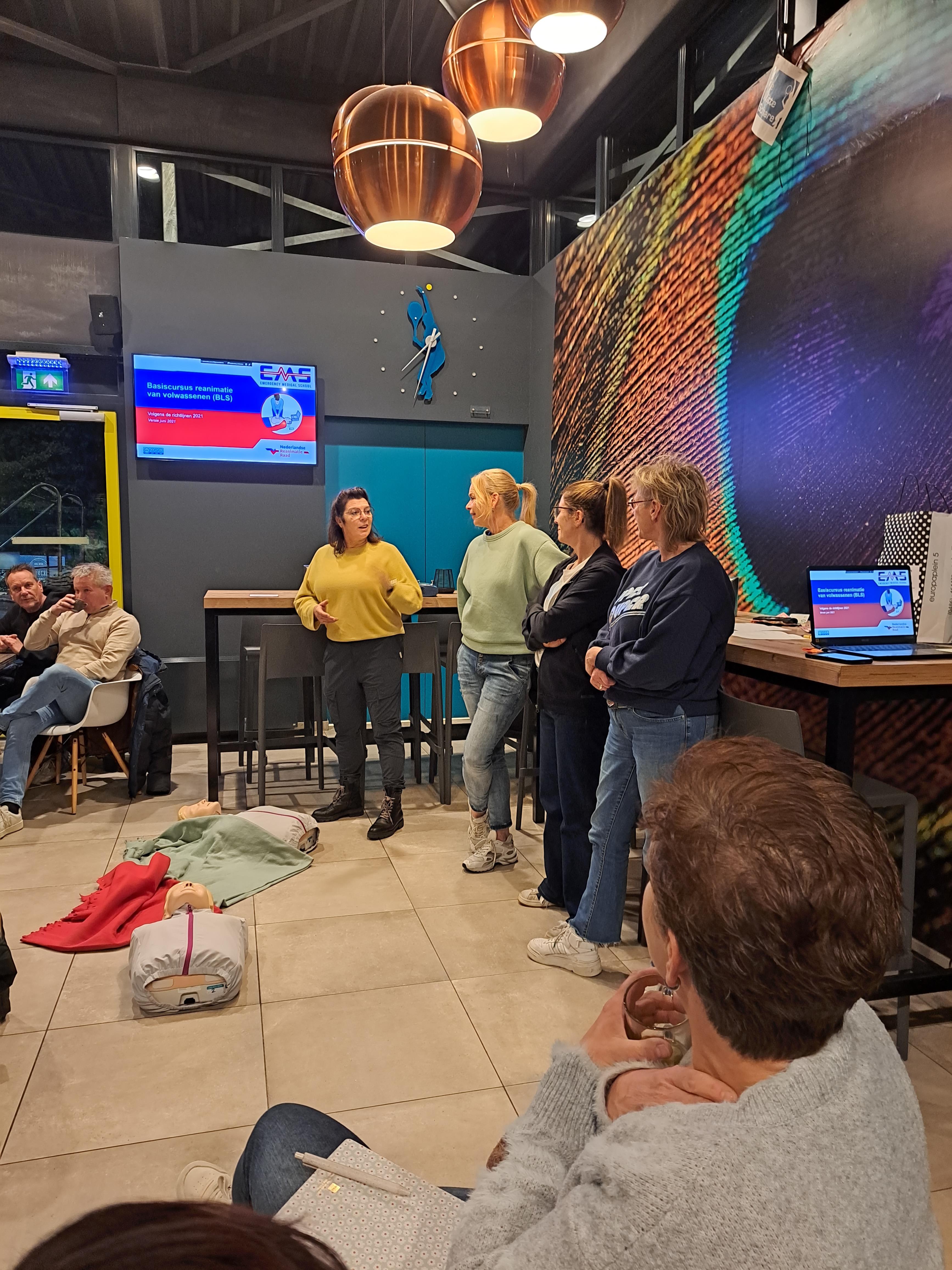 De opkomst was groot. Maar liefst dertig personen waren aanwezig om zich te bekwamen in het gebruik van een AED en hoe er gereanimeerd moet worden volgens de nieuwe regels die vanaf oktober 2025 gelden.